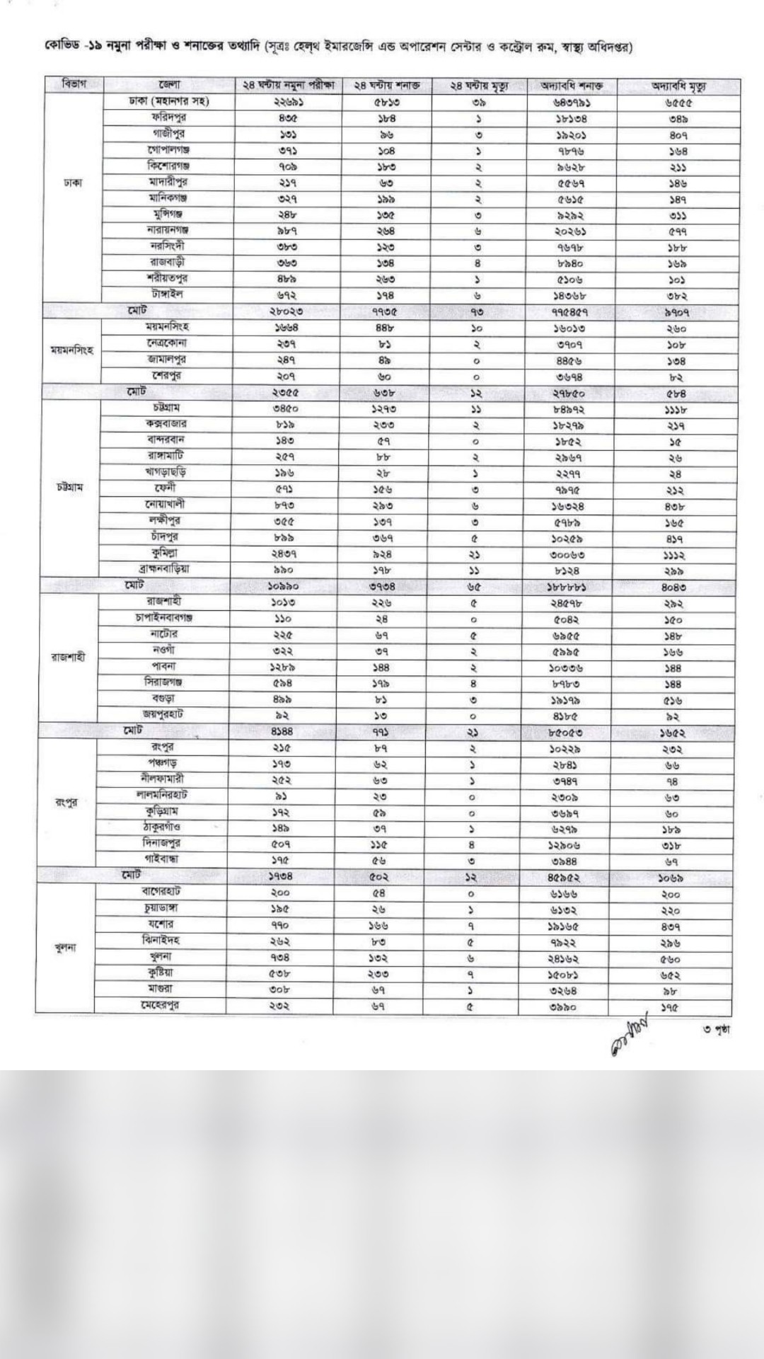 গত ২৪ ঘণ্টায় কোভিড – ১৯ পরিস্থিতি
