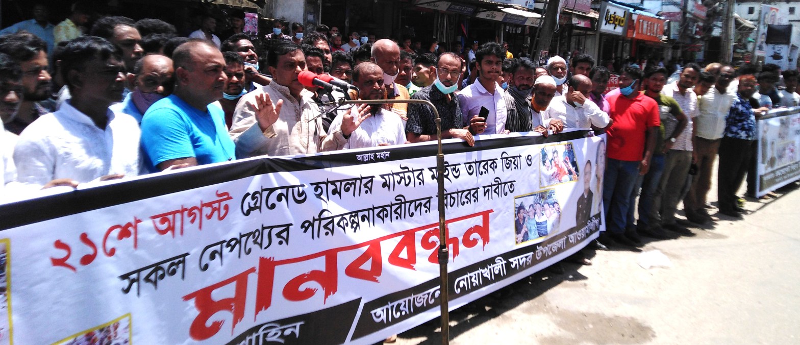 গ্রেনেড হামলার মাস্টার মাইন্ডতারেক জিয়ার বিচার দাবিতেমানববন্ধন