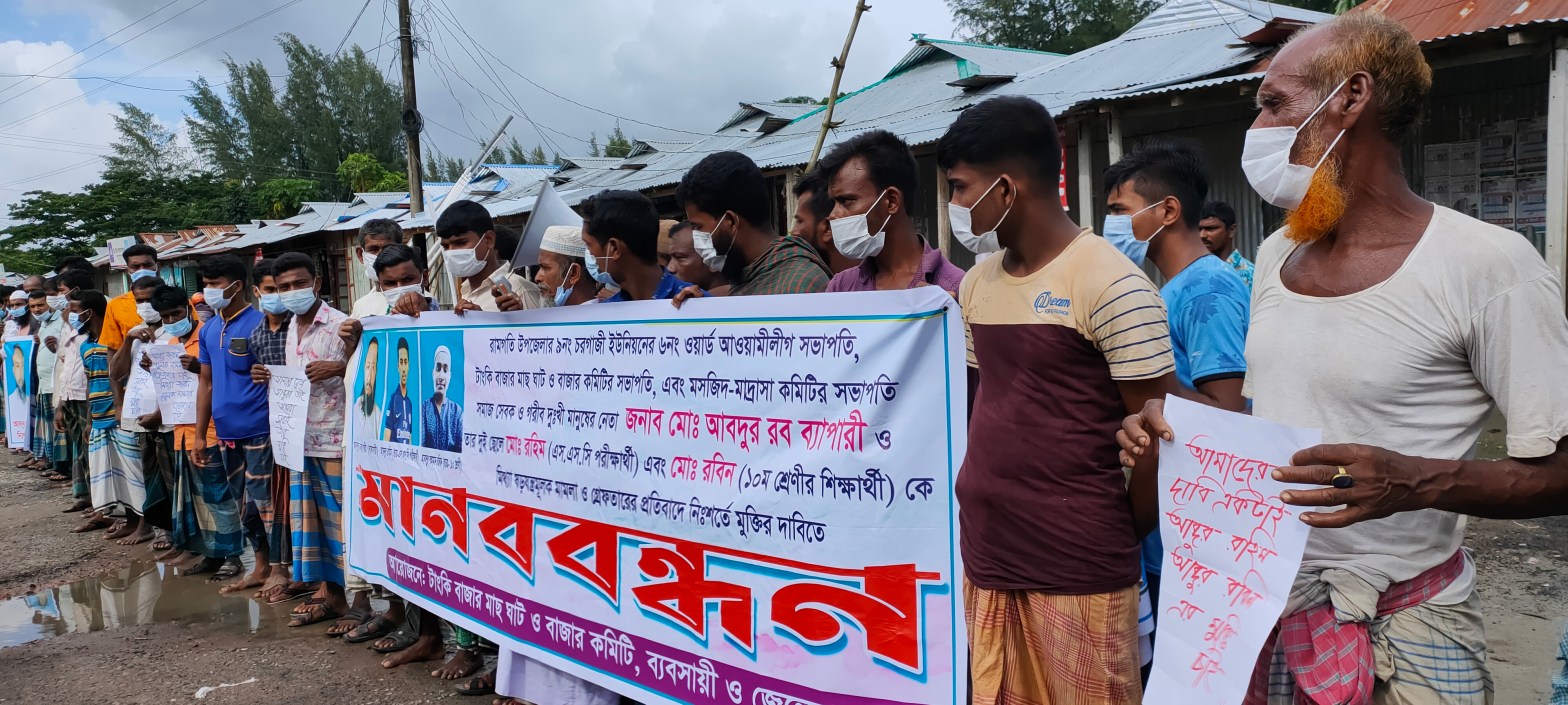নোয়াখালীর হাতিয়ায় কোস্টগার্ডের বিরুদ্ধে মানববন্ধন ও সংবাদ সম্মেলন